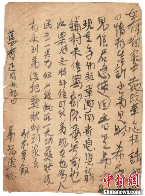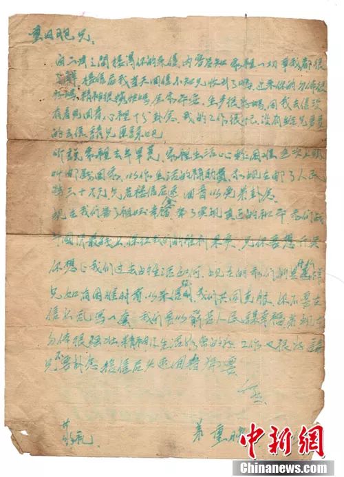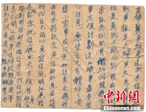 “这次来信没有别的事,就是分别太久没有见面,但是我想你的情份没有改变,我在外经常挂念你的身体如何,照应家事怎样。希望好好爱护自己身体,家事更加注意些,我在外面不需要记挂,见信如见面,以后将你的心意写信说明,以免我在外挂念。”