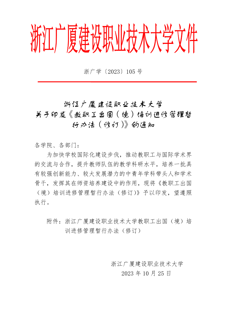 关于印发《教职工出国(境)培训进修管理暂行办法(修订)》的通知