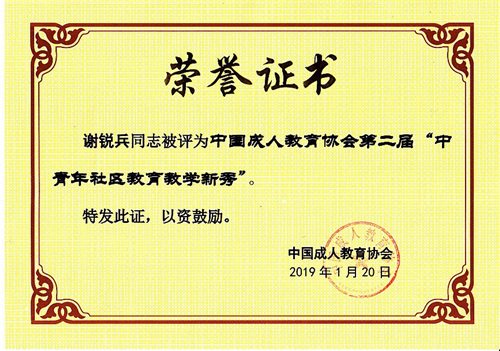 东阳电大谢锐兵老师荣获全国中青年社区教育教学新秀